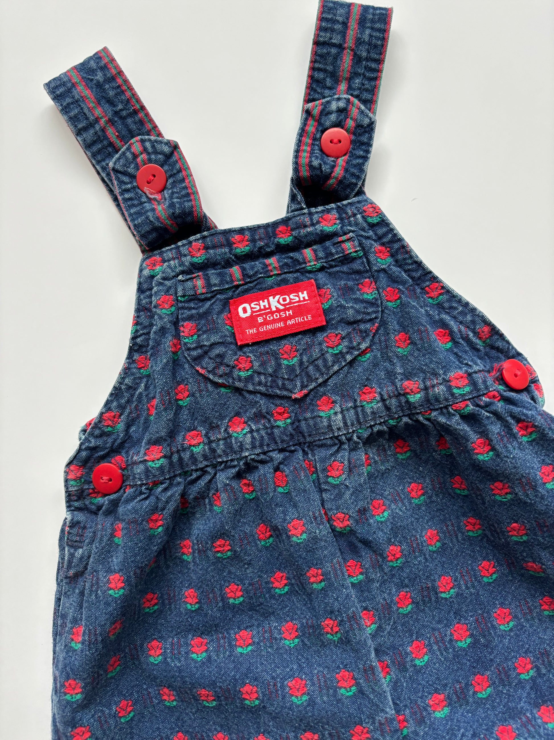 Vintage Blue & Red Oshkosh Dungarees Age 6-9 Months.